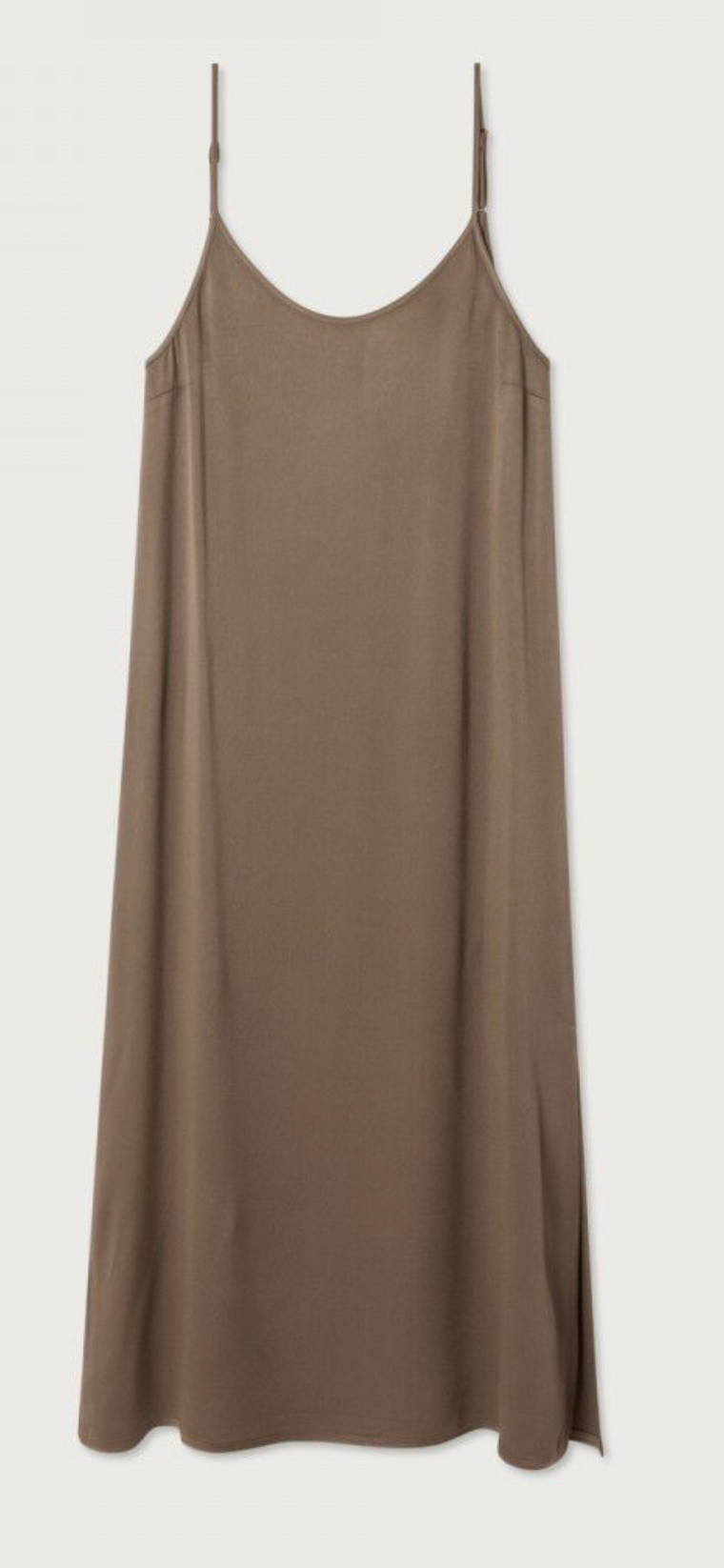Langes gerade geschnittenes Kleid mit Spaghetti-Trägern und tiefem Rundhals-Ausschnitt